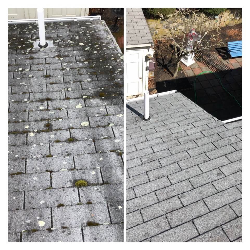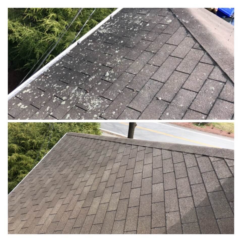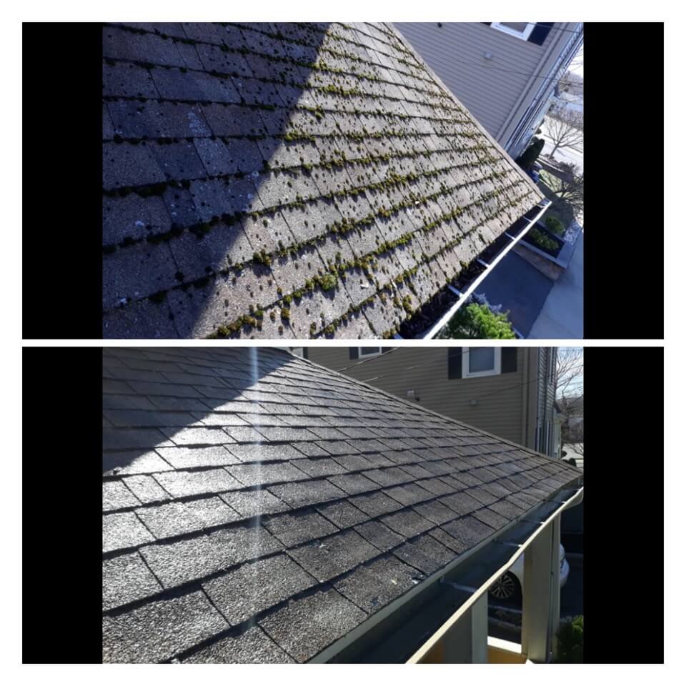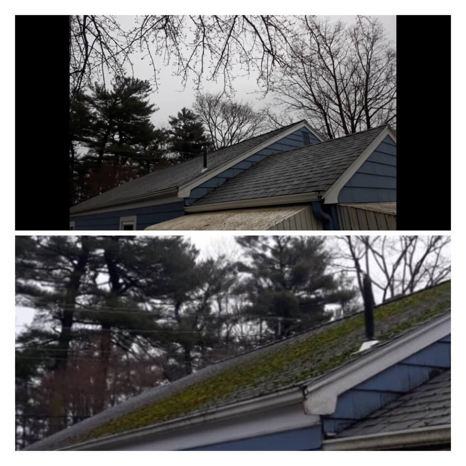 HiCleaners is the most experienced company in East kingston, NH that deals with roof washing and roof soft washing. All of our employees are trained to recognize precise solution mixing ratios to provide you with the safest and most effective soft washing service. Roofs are a commonly neglected part of a house due to the fact that most people don’t have ladders to access it, so it is very easy to just leave it alone and forget about problems that may start to arise. Just like many home owners, discoloration and small bits of moss on a roof can be overlooked because of the misconception that it is just aesthetic. However, it isn’t just aesthetic, the moss slowly lifts the granules off the shingles which in turn shorten the life of the shingle. The moss also spreads, just like any bacteria if it is left alone for too long, it can quickly become a problem that spirals out of control. Call HiCleaners for a free quote, we only use the most advanced eco-friendly solutions and equipment to make sure the job is done right, for the safety of the employees, your plants, grass, pets, and children.