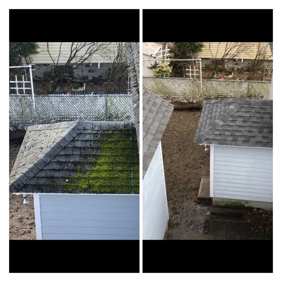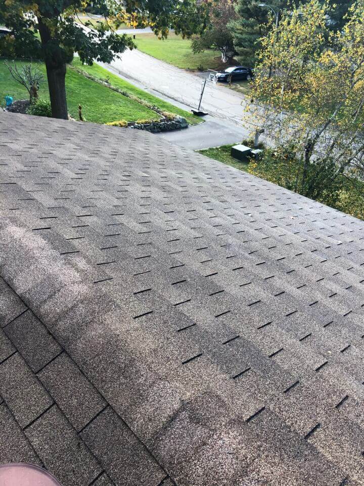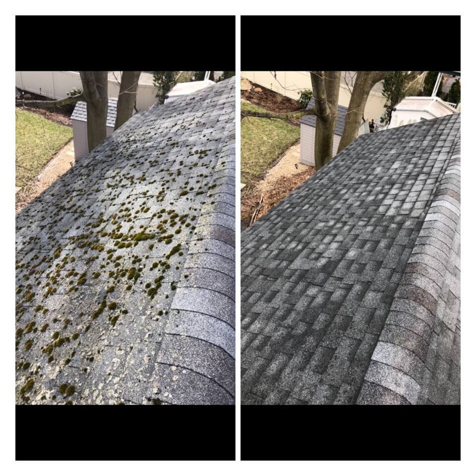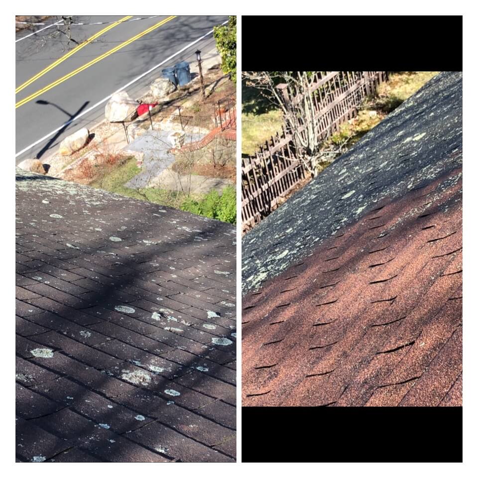 HiCleaners is the most experienced company in East kingston, NH that deals with roof washing and roof soft washing. All of our employees are trained to recognize precise solution mixing ratios to provide you with the safest and most effective soft washing service. Roofs are a commonly neglected part of a house due to the fact that most people don’t have ladders to access it, so it is very easy to just leave it alone and forget about problems that may start to arise. Just like many home owners, discoloration and small bits of moss on a roof can be overlooked because of the misconception that it is just aesthetic. However, it isn’t just aesthetic, the moss slowly lifts the granules off the shingles which in turn shorten the life of the shingle. The moss also spreads, just like any bacteria if it is left alone for too long, it can quickly become a problem that spirals out of control. Call HiCleaners for a free quote, we only use the most advanced eco-friendly solutions and equipment to make sure the job is done right, for the safety of the employees, your plants, grass, pets, and children.